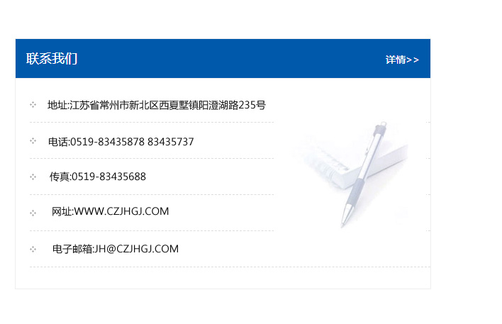 傳真:0519-83435688    郵編:213135    網址:WWW.czjhgj_com.feilidadiaokeji.com    電子郵箱:JH@czjhgj_com.feilidadiaokeji.com
